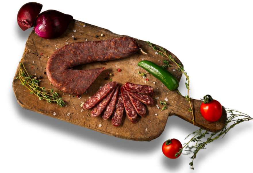 Месото, използвано за направата на нашите колбаси, идва от подбрани животни, отглеждани в района на Стара Загора. Те се транжират в сертифицирано месодобивно предприятие в с. Войводиново, с което си партнираме.