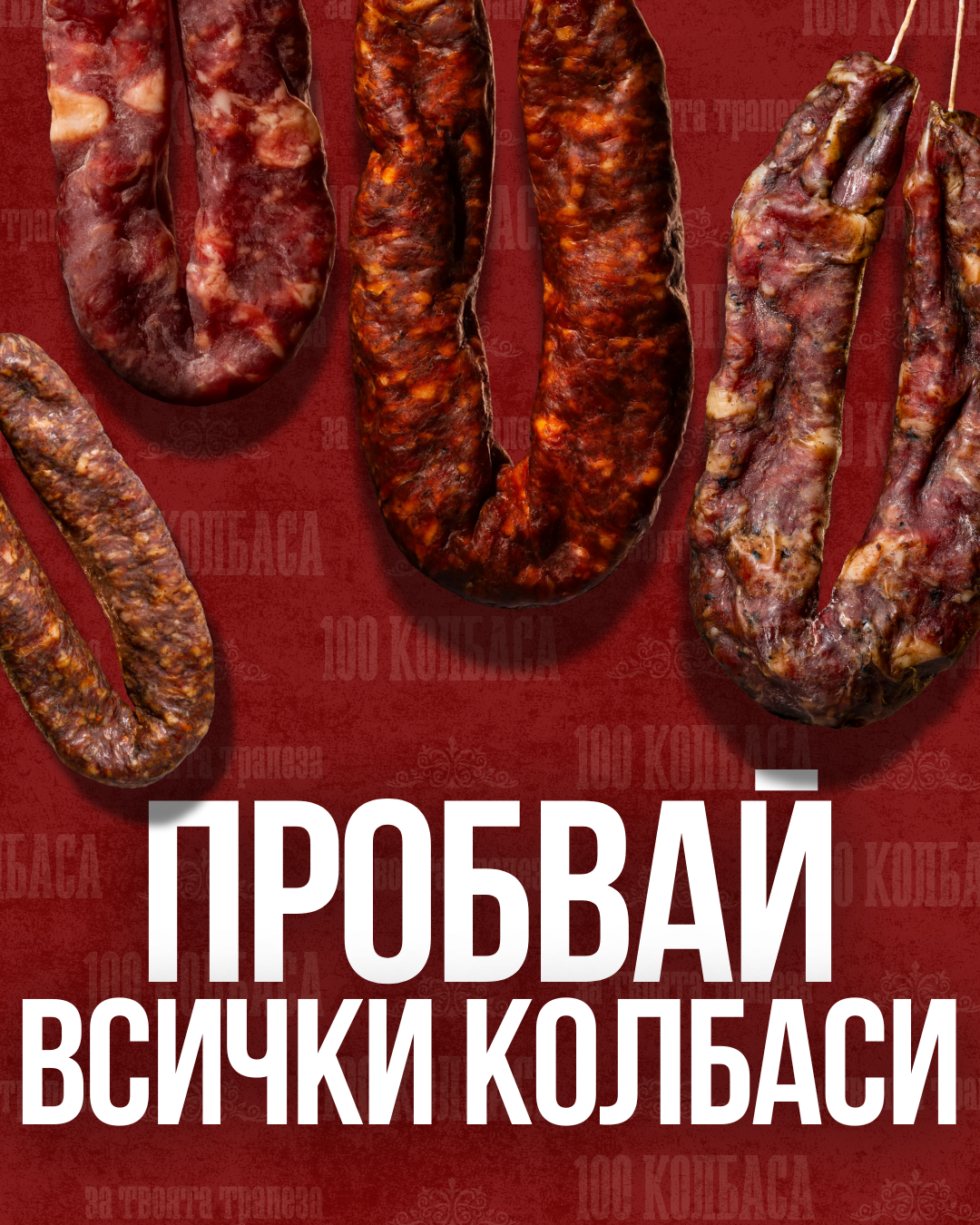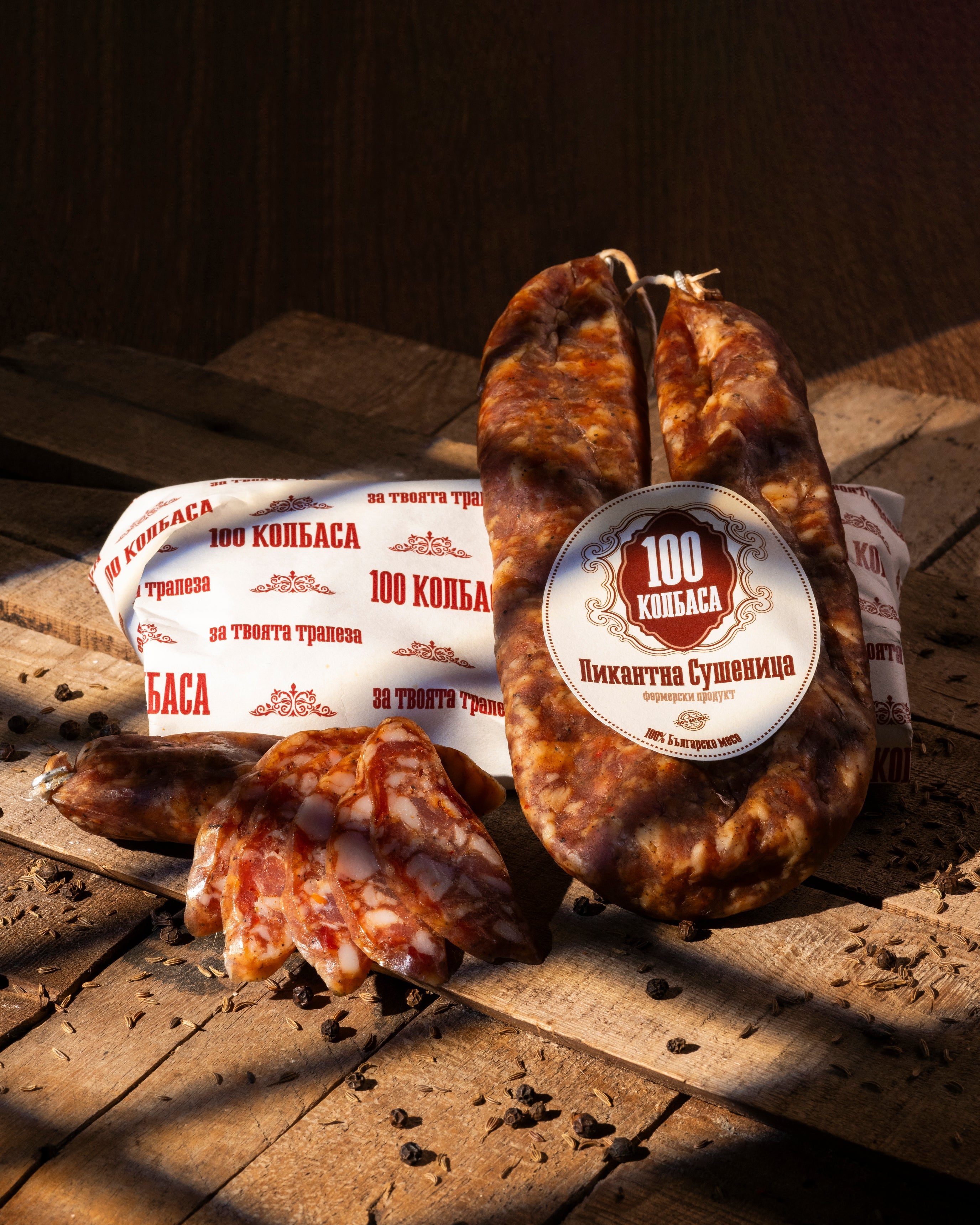 В 100 Колбаса правим сушеницата така, както трябва да бъде – от истинско българско месо, натурални подправки и с нужното време за съвършен вкус.Всяко парче е резултат от майсторство, търпение и уважение към традицията – ароматно, сочно и с характер.